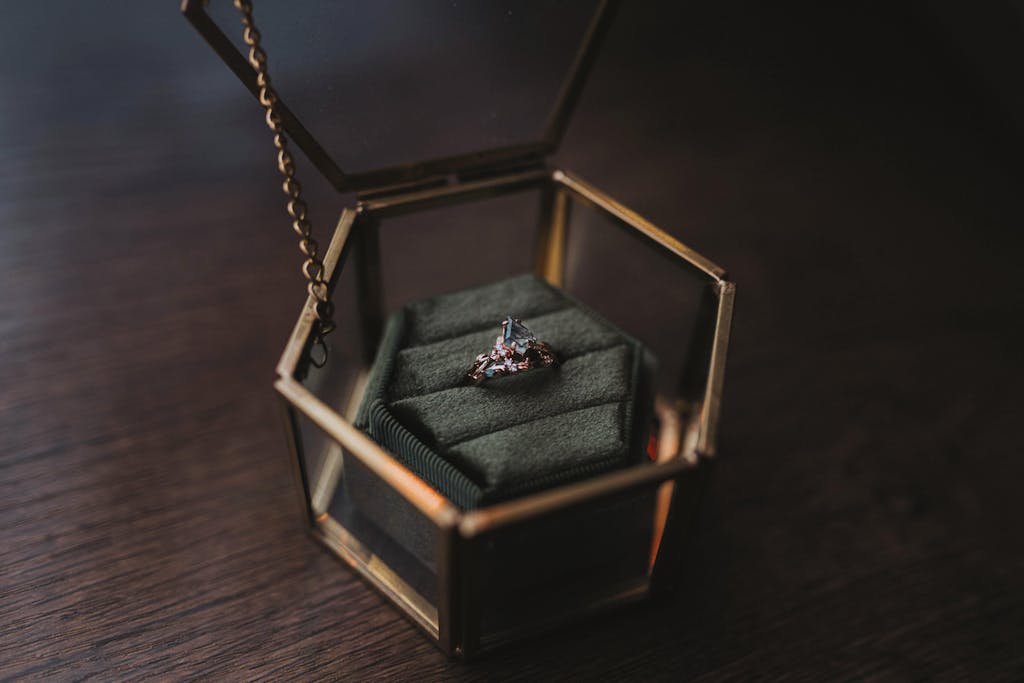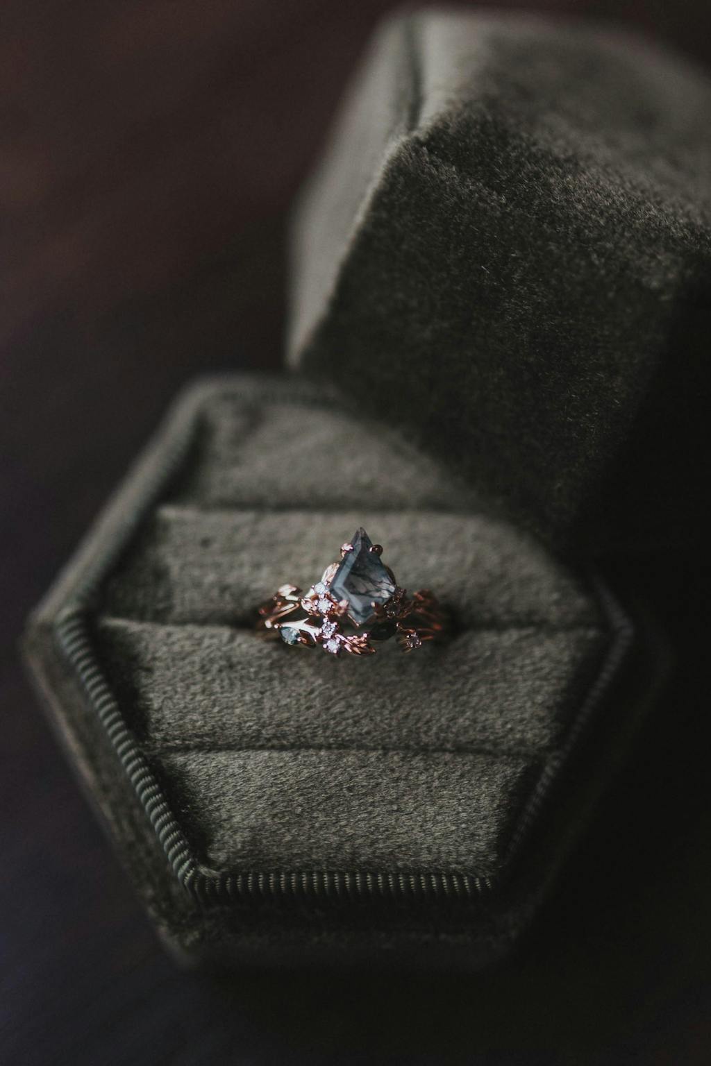 This set commemorates ten years together, and it carries that significance beautifully. Every element feels intentional — elegant yet organic, refined yet deeply personal. The moss agate’s natural depth paired with the delicate detailing makes the ring both striking and timeless.