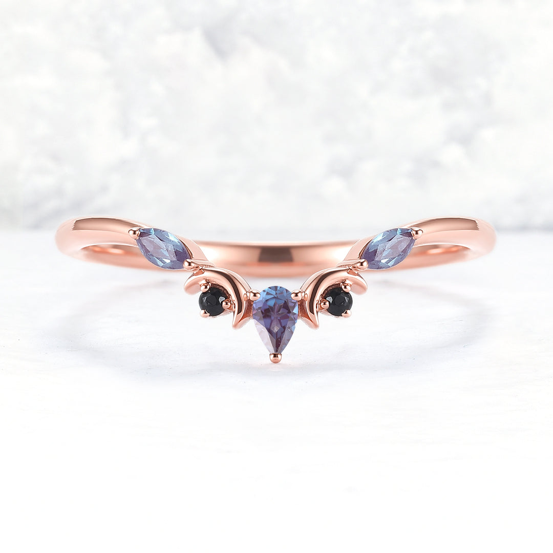 Curved Moon Pear Cut Alexandrite Wedding Band