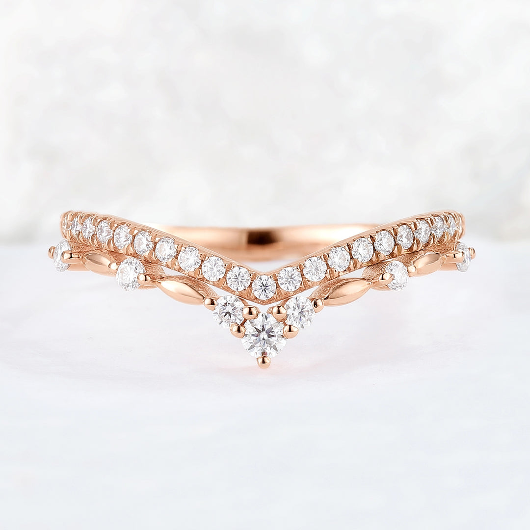 At Iver Jewelry, our curved stacking rings feature graceful V-shaped silhouettes, leaf-inspired details, and delicate pavé accents. The collection includes unique curved wedding bands, curved wedding band moissanite, curved pearl wedding band, offering refined craftsmanship, easy stacking, and timeless elegance for modern bridal sets.