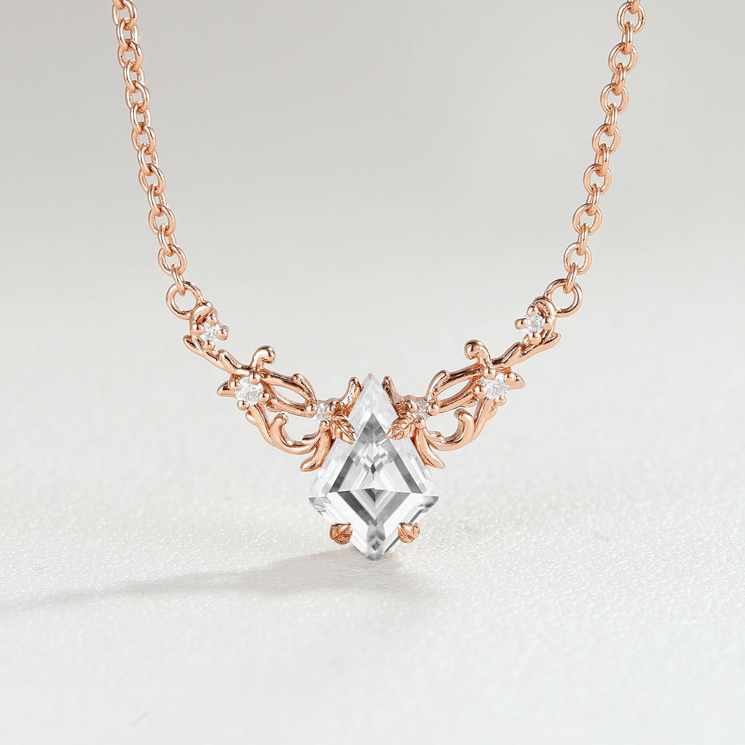 Kite Shaped Garnet Rose Gold Necklace Halloween Jewelry
