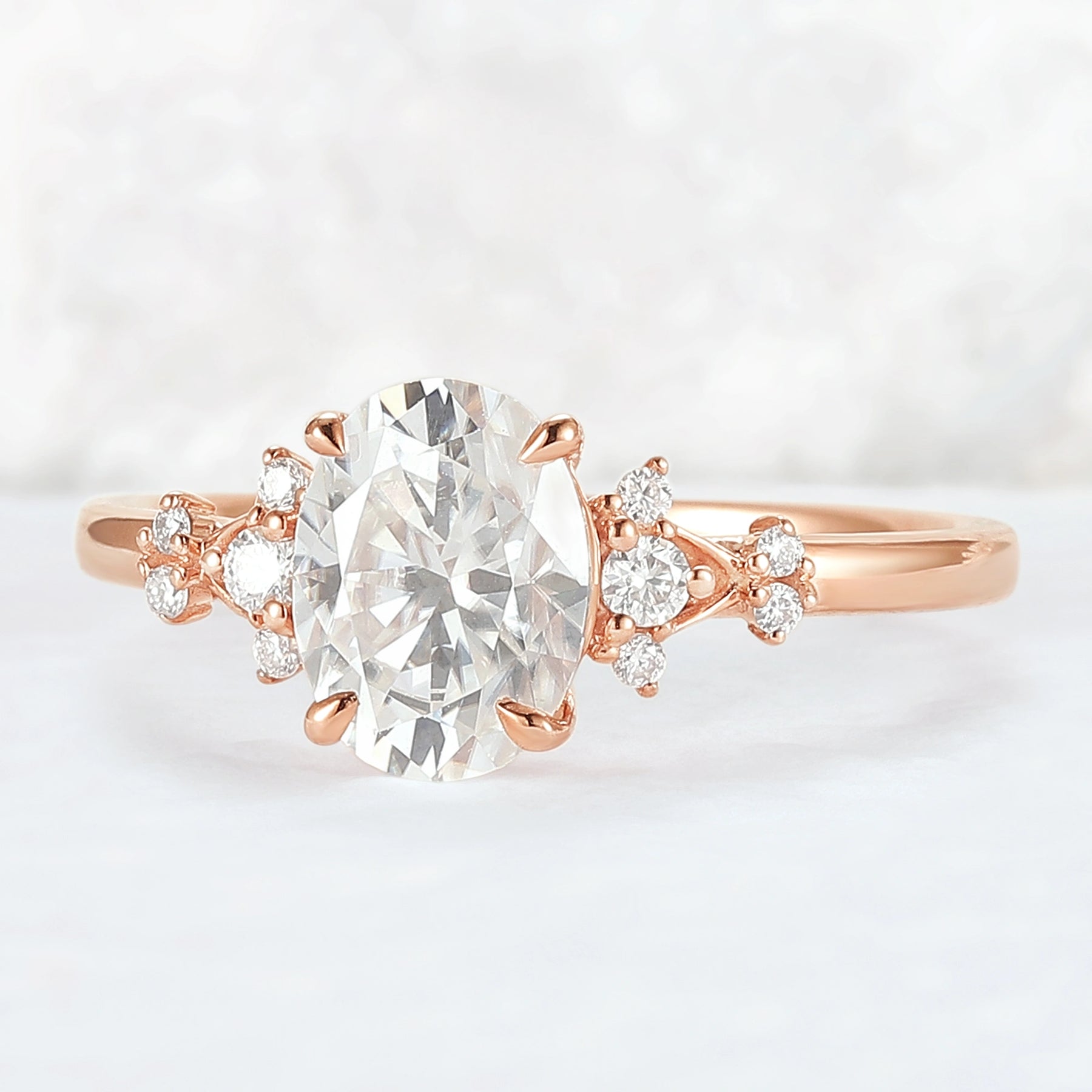 Simple Oval Cut Moissanite Cluster Gemstone Ring