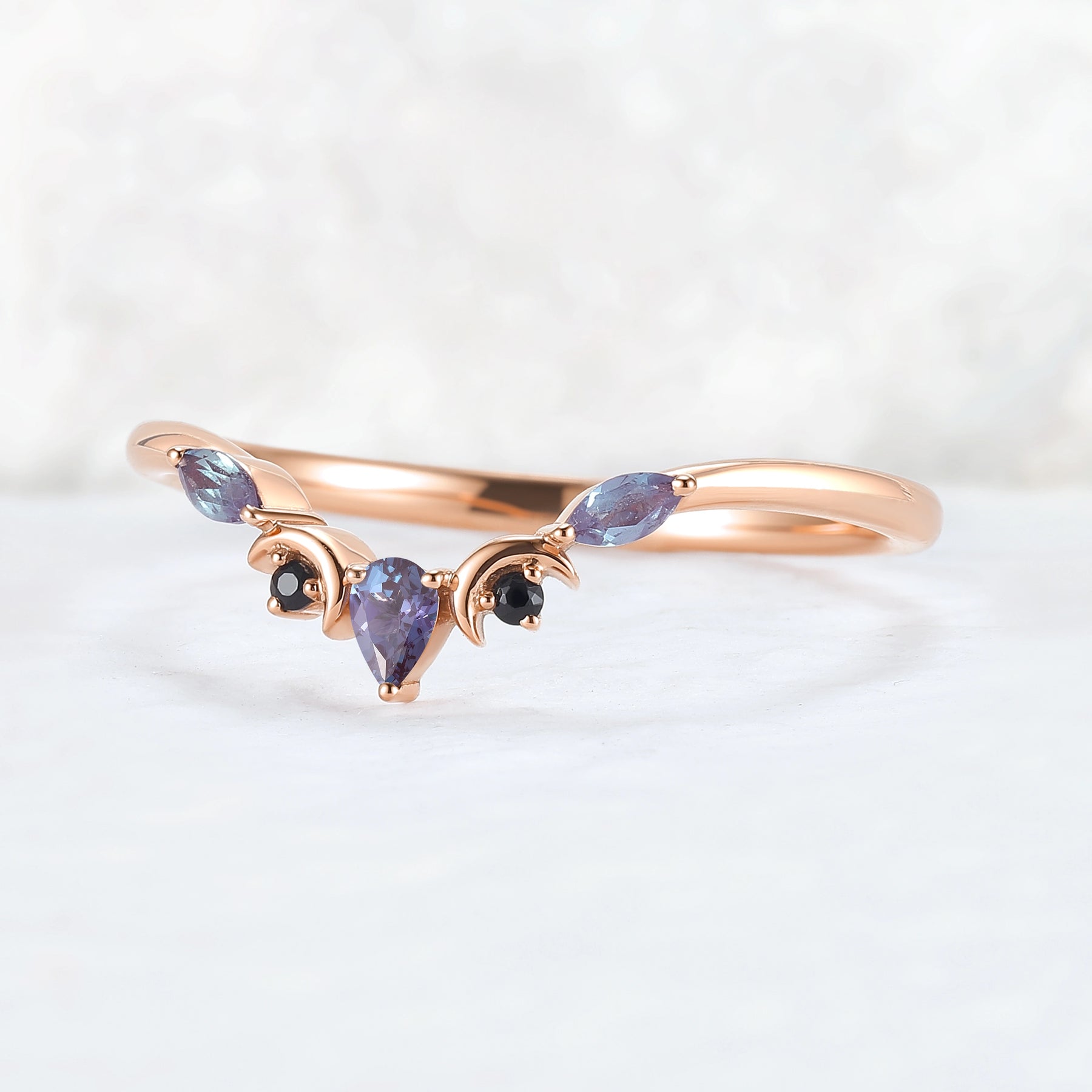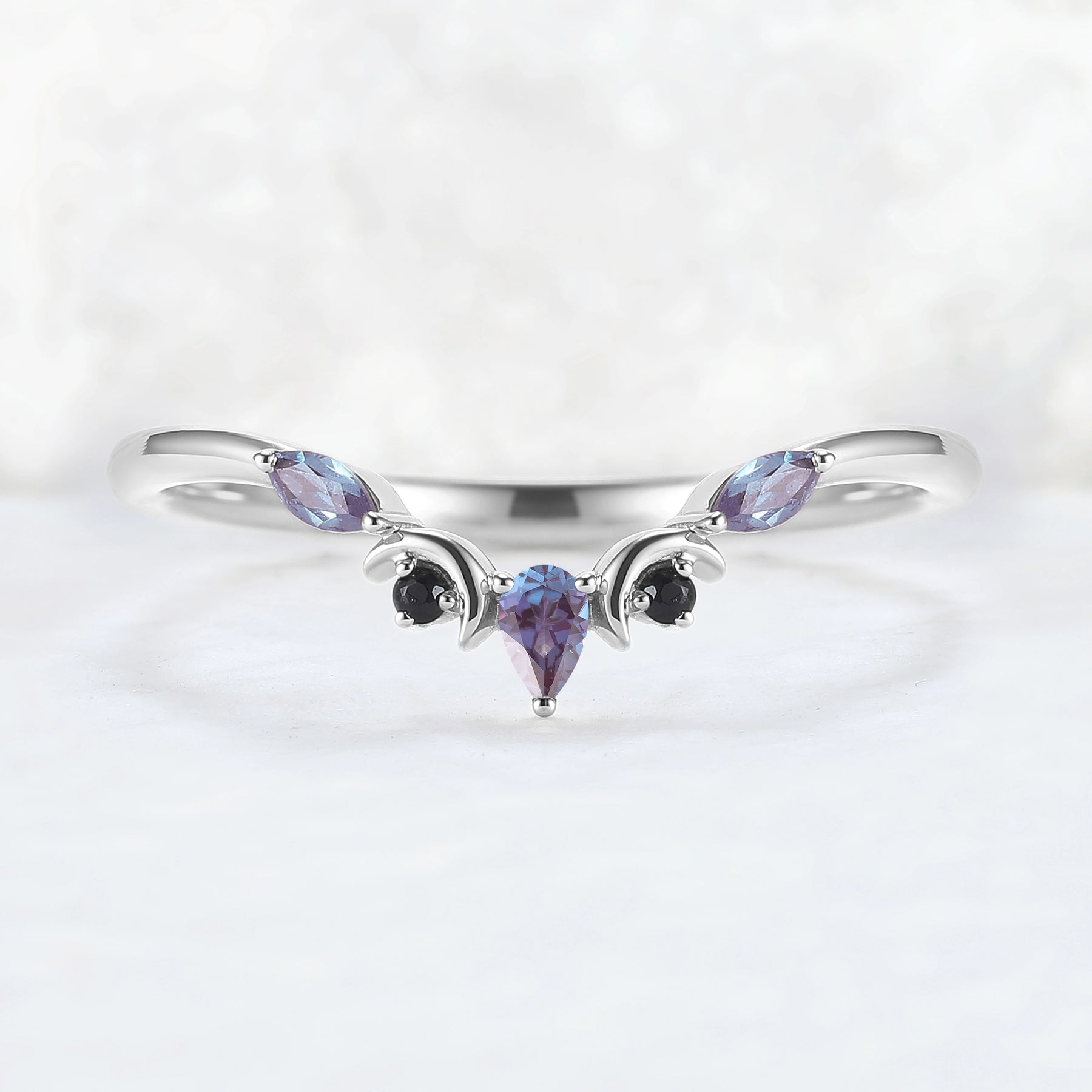 Curved Moon Pear Cut Alexandrite Stacking Ring