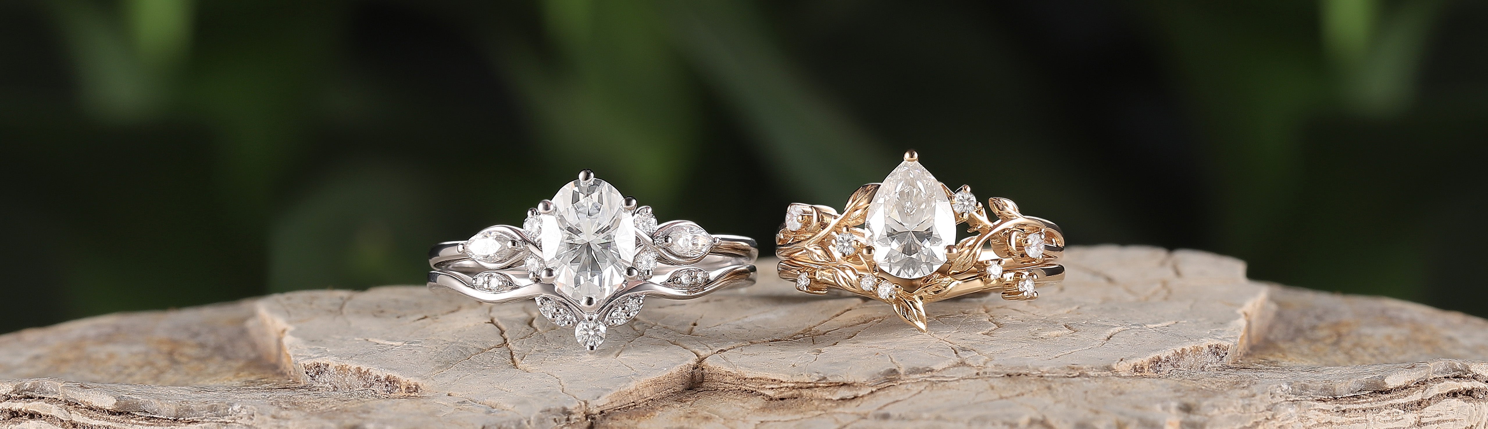 Our Moissanite engagement rings and wedding ring sets are the perfect choice for celebrating love. Each Moissanite gem is expertly cut and polished to radiate brilliant sparkle. More affordable than diamonds yet equally stunning, Moissanite has become a cherished choice for couples seeking beauty and value. Let your Moissanite ring witness your love and accompany you through life’s most meaningful moments.