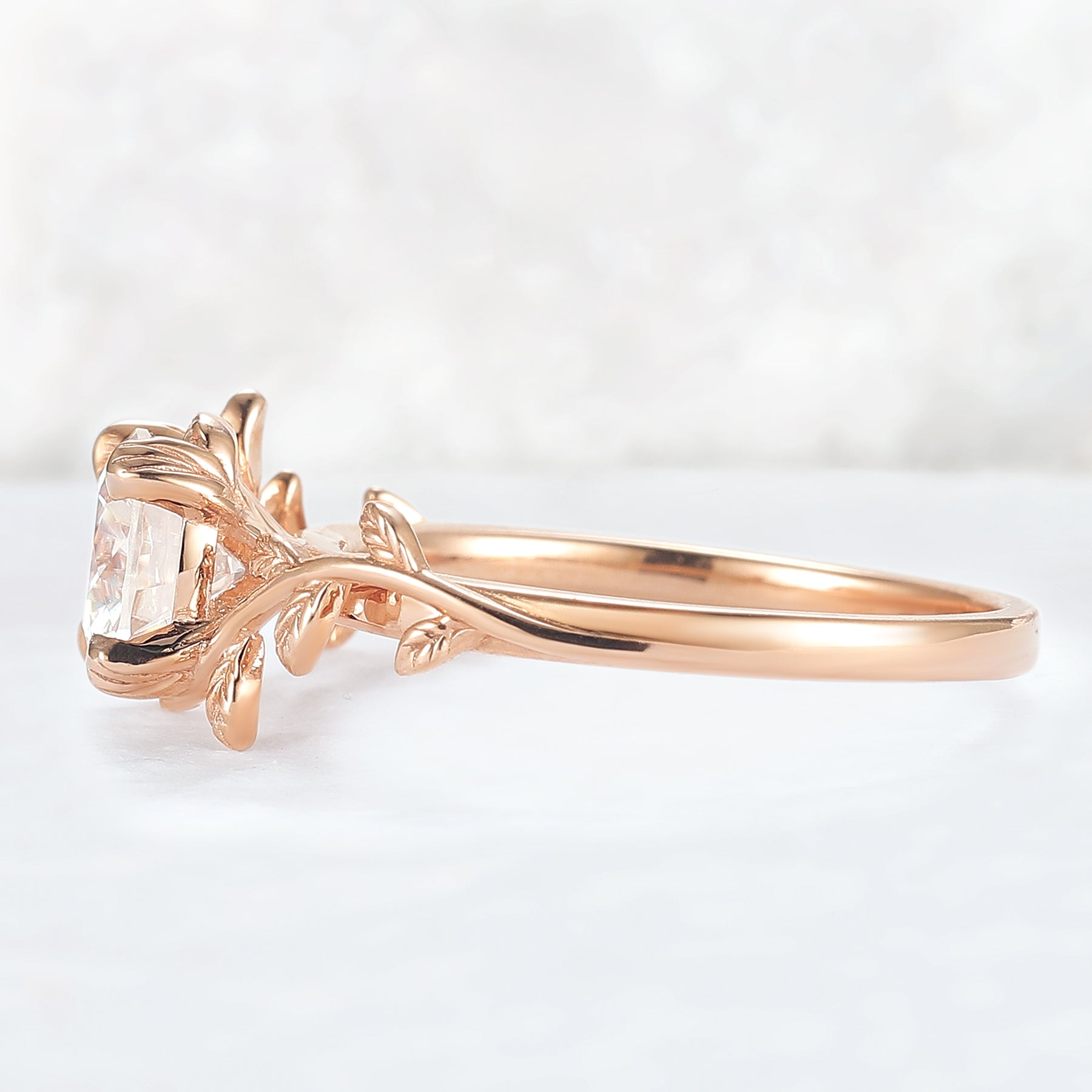 This unique set features a stunning round shape moissanite set in 10k rose gold. Round moissanite adds a touch of sparkle to this one-of-a-kind ring, making it the perfect choice for the stylish.
