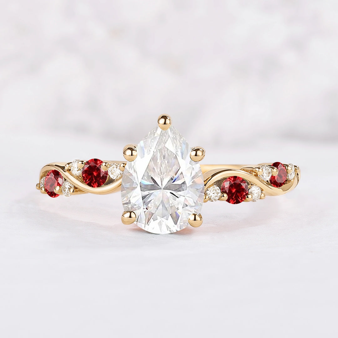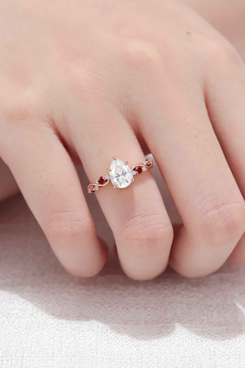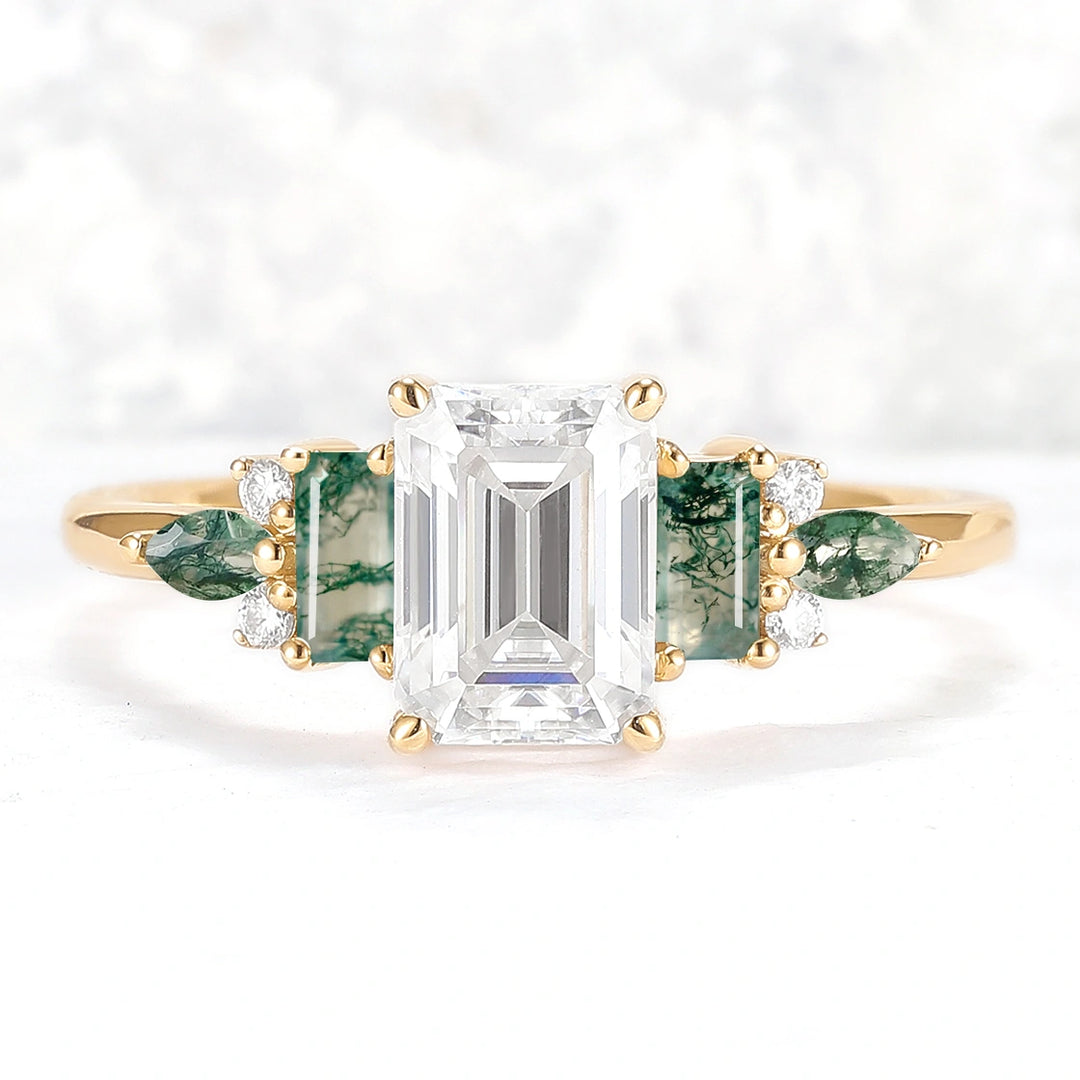 Choose from a variety of styles including oval-cut, pear-cut, and hexagon-cut, kite-cut moissanite rings.