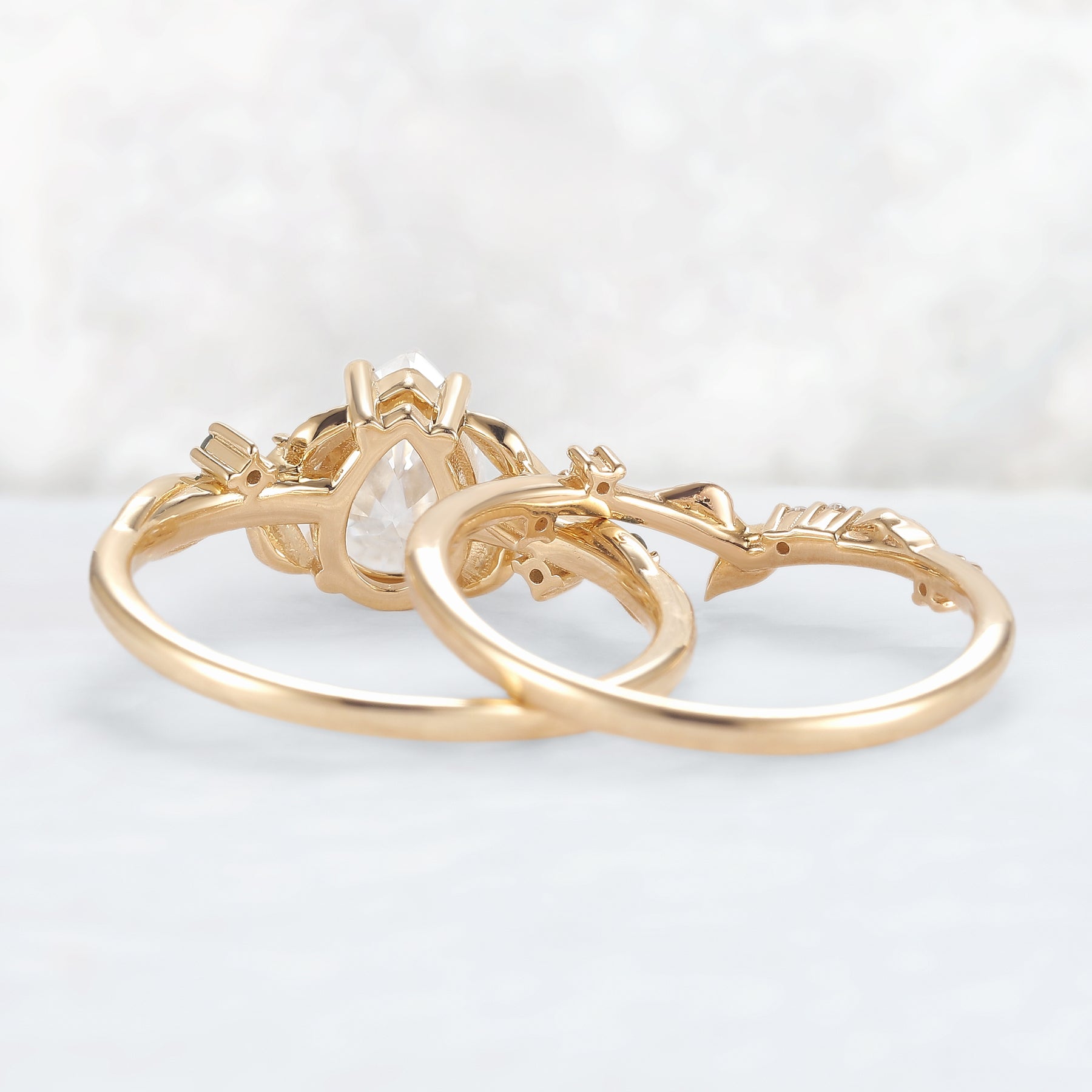 Nature Inspired Pear Cut Moissanite Moon Gemstone Ring Set 2pcs