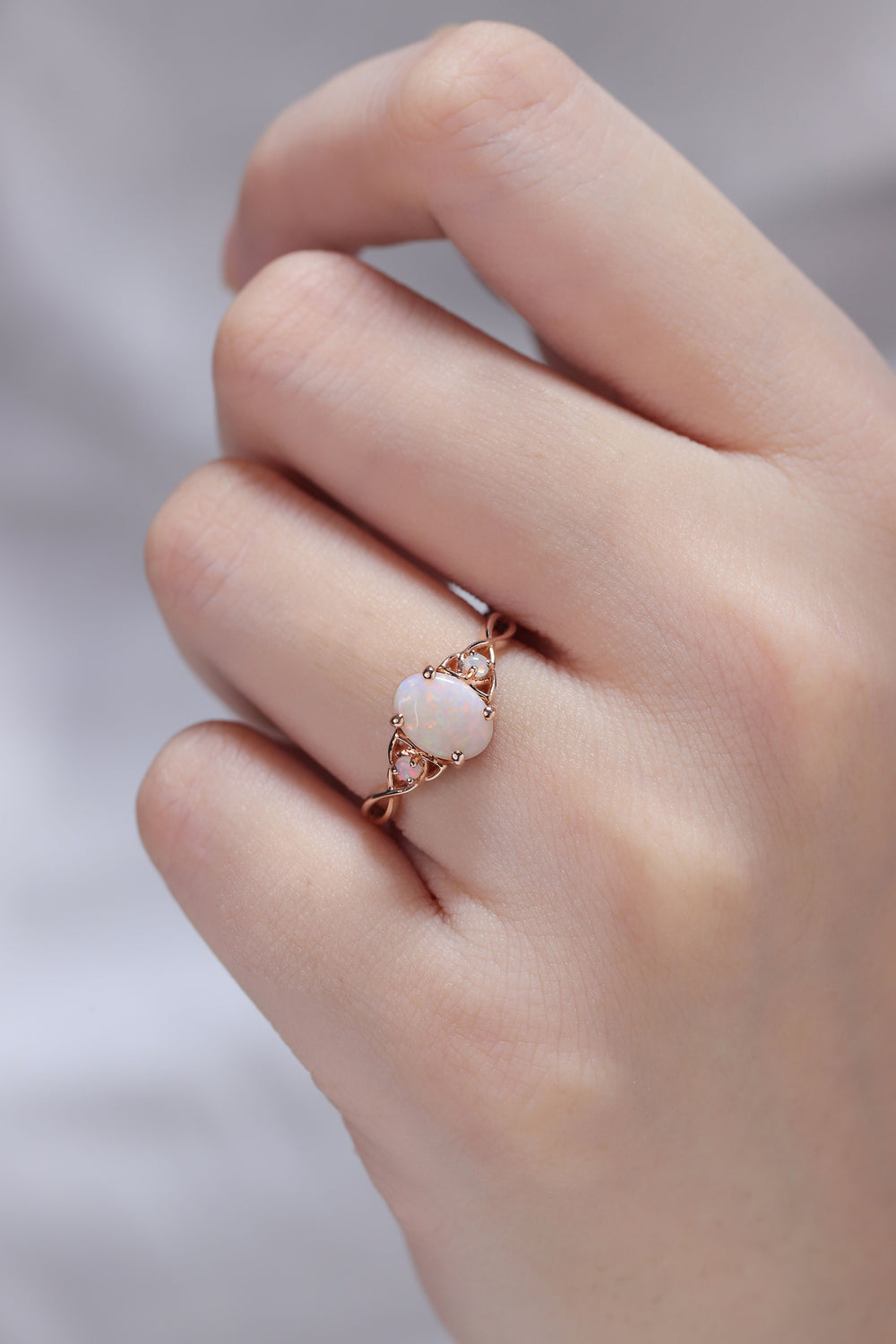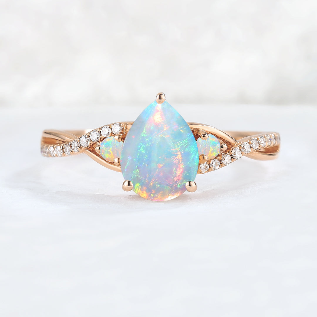 Every opal has its own natural color play, so each piece feels one-of-a-kind. This makes unique opal engagement rings ideal for someone who wants artistic, meaningful sparkle instead of a traditional look.