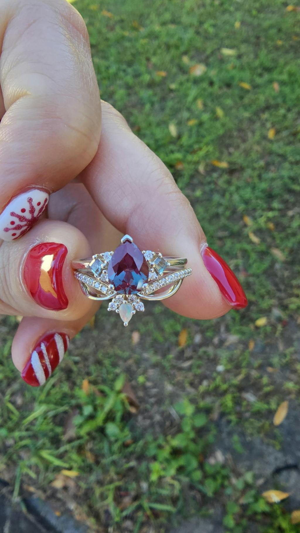 Princess Mononoke Pear Cut Alexandrite Cluster Gemstone Ring Set 2pcs